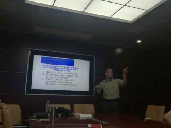 7月4日上午,美国纽约州立大学水牛城学院刑法学系Michael Cretacci教授来访 海角社区 ,在405会议室开展了以“Fighting Facts:Adversarial Justice in America ”为主题的学术讲座。院长屈茂辉,法学系老师段启俊、彭辅顺、赵香如、王燕飞、姚诗、陈果、王红兵以及学院部分博士生参加讲座。
