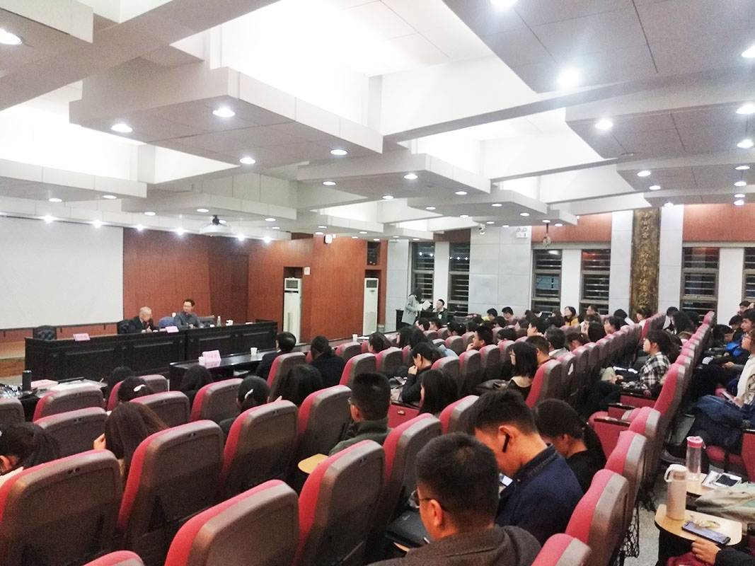 模拟法庭顺利举行,此次讲座由札幌学院大学名誉教授、博士生导师铃木敬夫教授主讲,由白巴根老师担任主持人,邱昌茂老师、邓乾坤老师担任翻译。