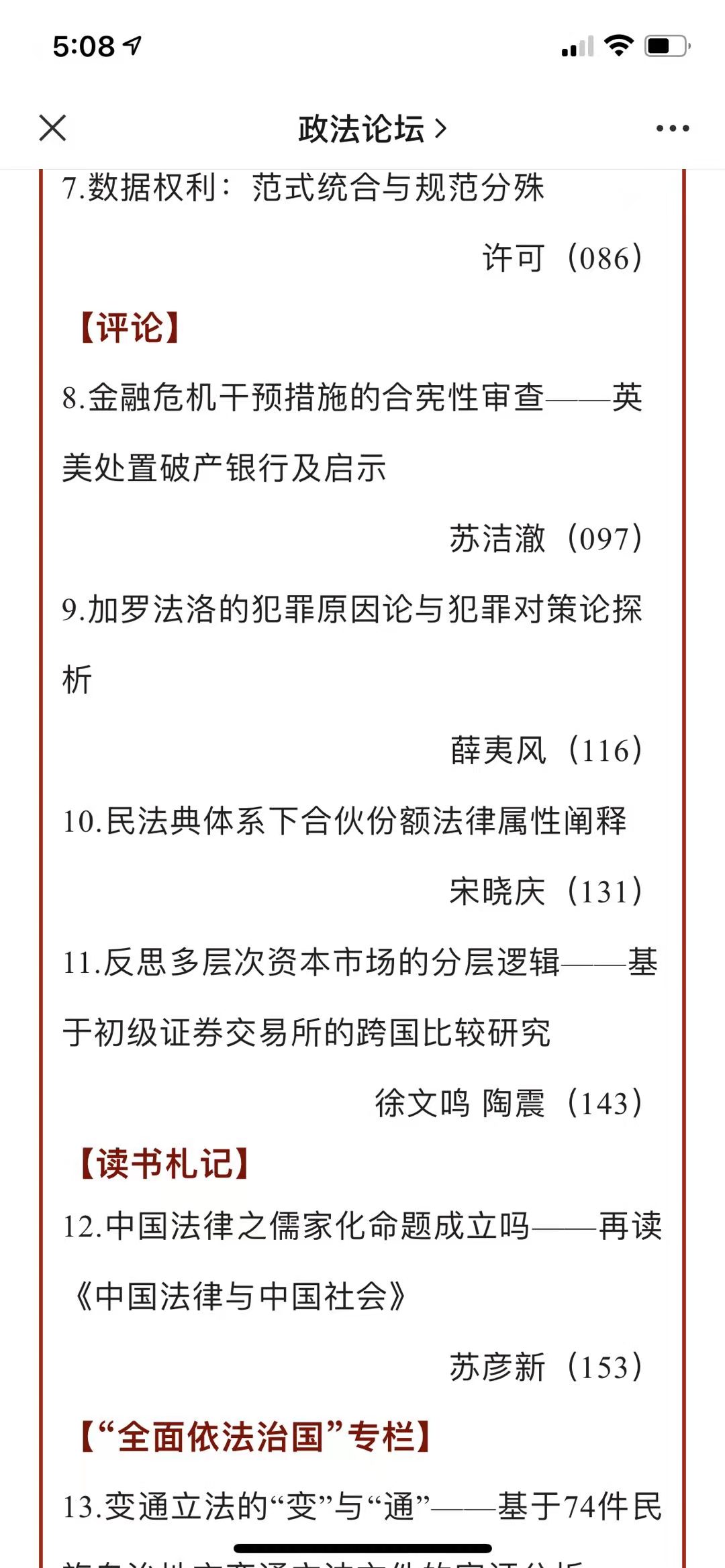 宋晓庆助理教授在CSSCI来源期刊,中国中文核心期刊《政法论坛》2021年第4期发表论文《民法典体系下合伙份额法律属性阐释》。