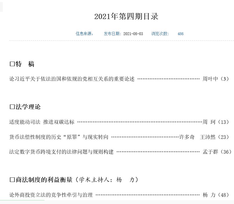 周珂教授在法学CSSCI来源期刊、中国中文核心期刊《政法论丛》2021年第4期发表论文《适度能动司法推进双碳达标——基于实然与应然研究》。