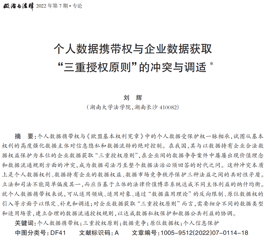 一、个人数据携带权与企业数据获取“三重授权原则”的基本构造及冲突