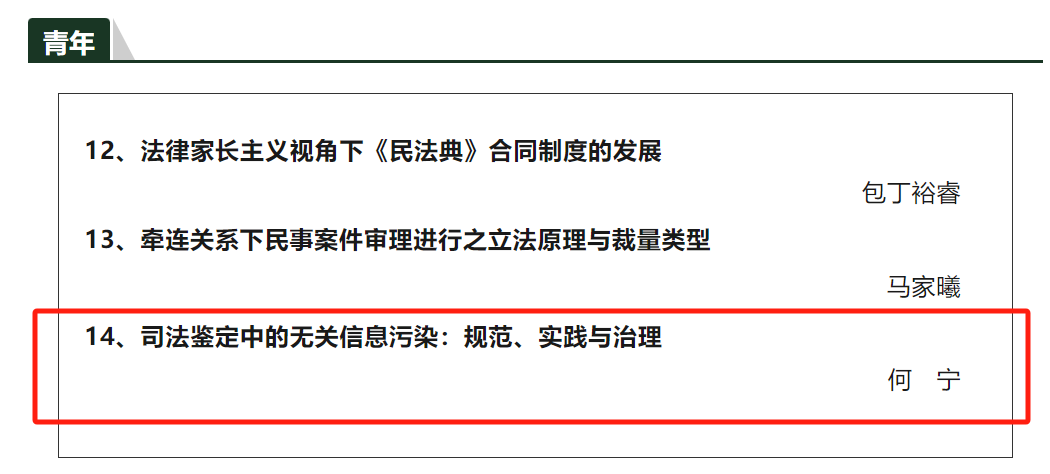 何宁助理教授在CLSCI《中外法学》2024(4)上发表论文《司法鉴定中的无关信息污染:规范、实践与治理》。