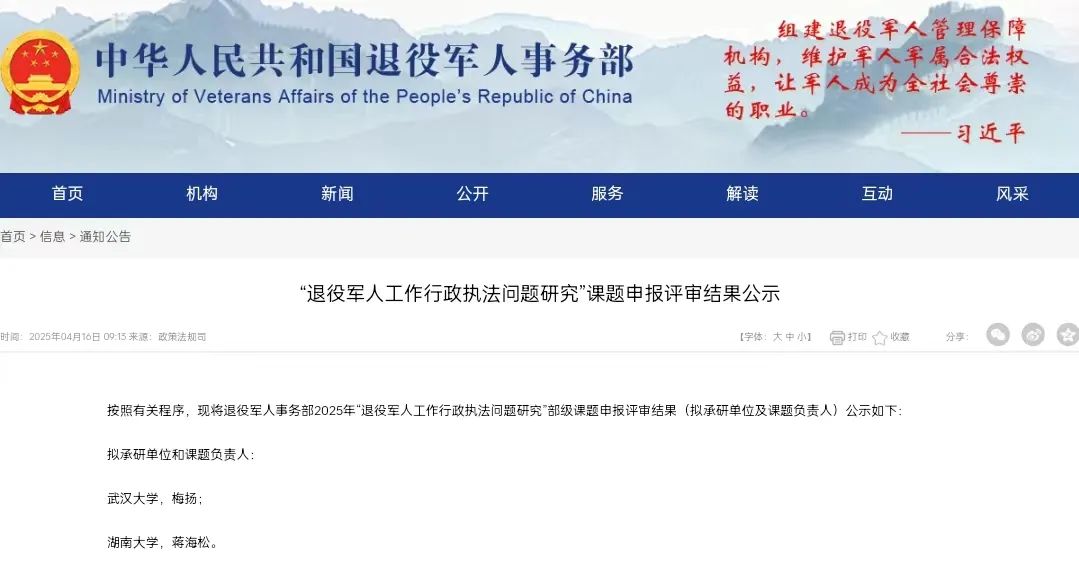 2025年上半年,退役军人事务部公布了2025年部级课题“退役军人工作行政执法问题研究”申报评审结果, 海角社区