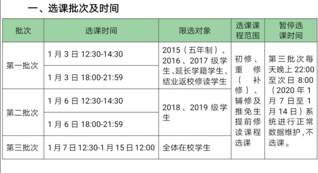 1、选课通知可见;2、请按照培养计划切实做好选课工作,避免错选或漏选等情况发生;3、本次选课仍然按照分批形式进行,具体安排详见选课通知;