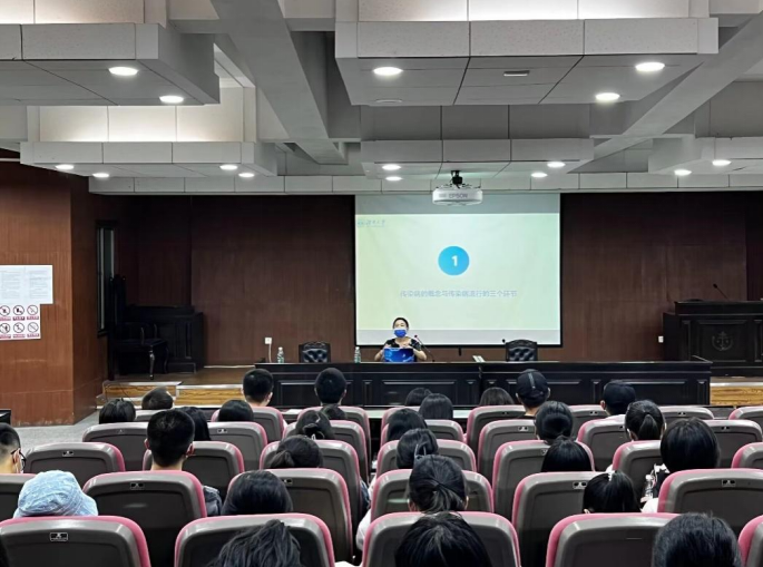 关于传染病,尹老师首先对其概念及流行的三个环节进行了详细介绍,点明传染病是不可能被消灭的。接着,她提出保护免疫力的建议及预防措施,并讲解了疫苗的基本知识。针对新冠肺炎、肺结核、艾滋病、病毒性肝炎等发病数与死亡数相对较高的传染病,尹老师重点介绍流行病学特征、防控要求、治疗手段,还带领同学们回顾了之前做过的艾滋病问卷,强化同学们对艾滋病的预防意识。最后,尹老师引用《黄帝内经》中的“正气存内,邪不可干”一句,提醒同学们要坚持“合理膳食、适量运动、心理平衡、戒烟限酒”的十六字方针,做自己健康的第一责任人。