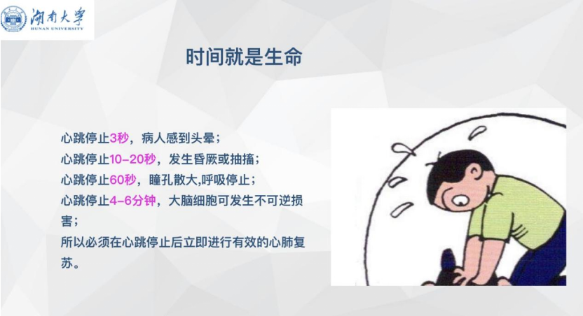 在最后一个环节,尹老师从专业的角度详细介绍心肺复苏的流程及操作要点。此外,她还介绍自动除颤仪(AED)的使用,向同学们强调了心肺复苏对于提高抢救成功率的重要意义。