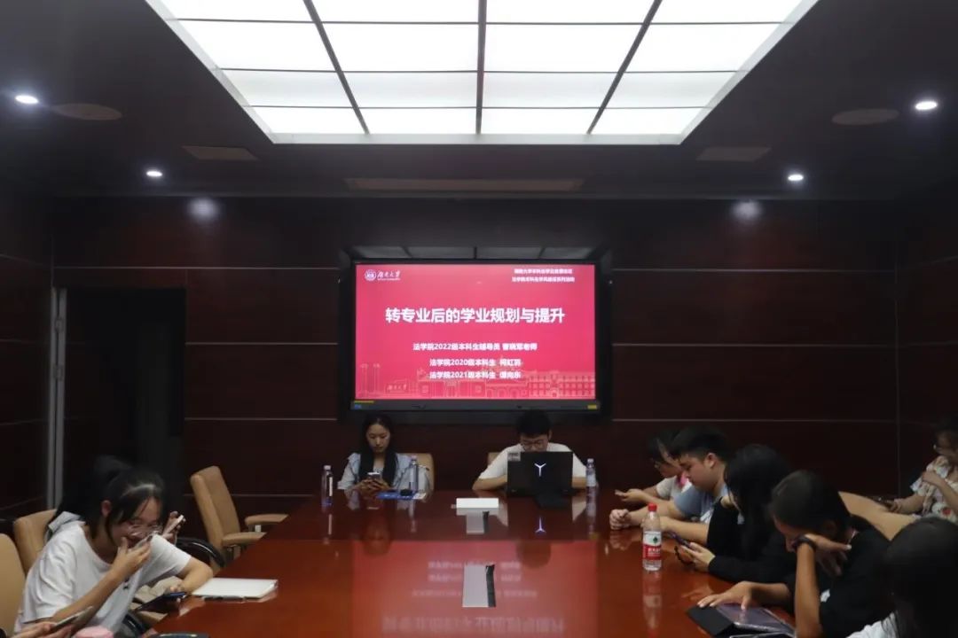 自由交流环节中,同学们踊跃提问,咨询了更多转专业后保研情况、课程修习、英语学习等内容,为转专业的同学拨云见日,助其深入了解法学这门专业。