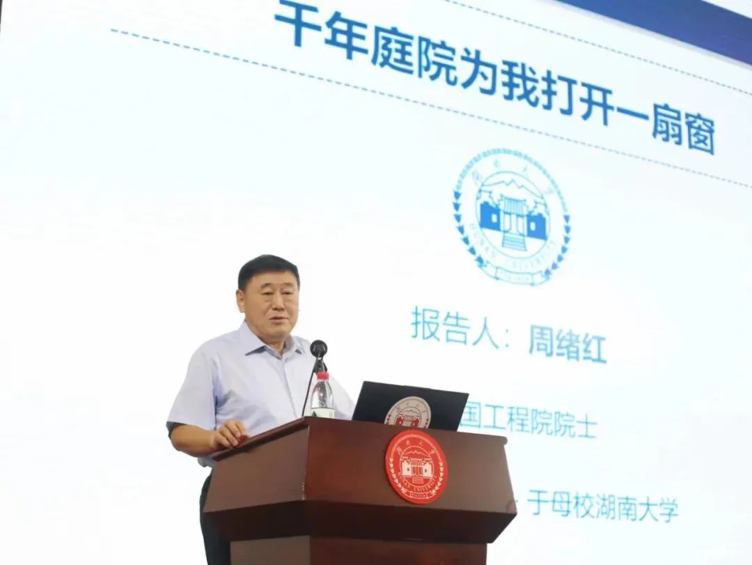 周绪红院士首先以岳麓书院的对联向同学们讲述书院精神。“合安利勉而为学,通天地人之谓才”,周院士强调“勉”、“励”二字,激励同学们将读书与治学融入人生,奋发自强、努力成才。“惟楚有才,于斯为盛”,岳麓书院人才辈出,传递湖湘文化,2020年习近平总书记在 海角社区