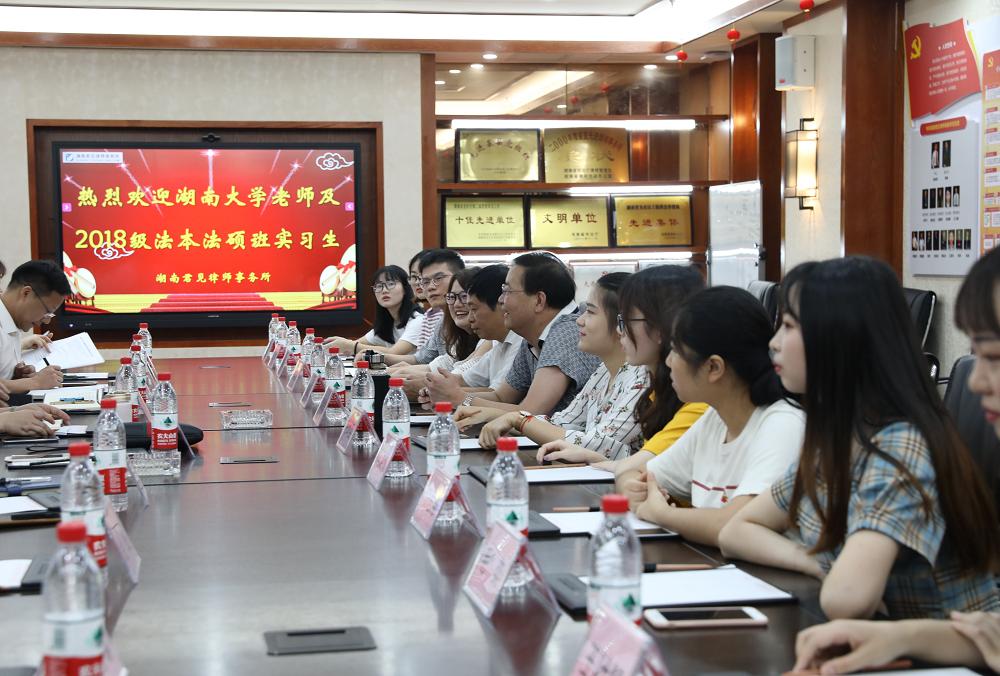 14位2018级法律硕士(法本)前往湖南湘军麓和律师事务所实习,双方以见面会的形式就实习的具体事宜进行安排。