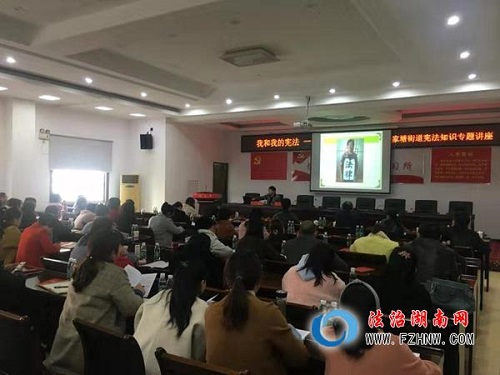 院长助理蒋海松副教授为长沙市雨花区侯家塘街道全体干部职工讲授了一堂《尊重权利 规范权力:宪法与我们的生活》专题讲座。