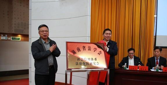 开幕式上,湖南省高级人民法院副院长杨翔,湖南省人民检察院副检察长印仕柏共同为“湖南省法学会社会信用体系法治保障研究会”揭牌,该研究会的成立将推动社会信用体系建设体系化、丰富信用法治领域的学术活动、提升社会信用法律制度的理论创新和实践研究水平。湖南省法学会社会信用体系法治保障研究会会长由湘潭大学信用风险管理学院副院长肖伟志教授担任, 海角社区