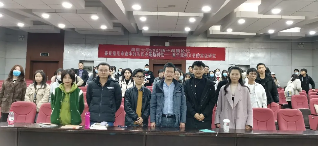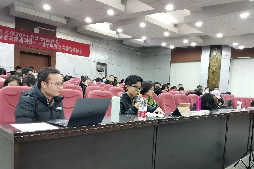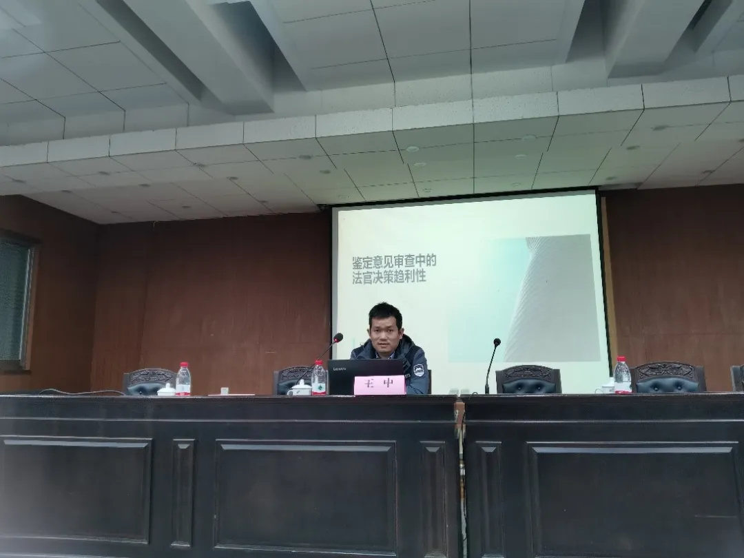 王中老师作了主题为“鉴定意见审查中的法官决策趋利性”的精彩演讲,博士生吴俊廷、易凡作为嘉宾出席。