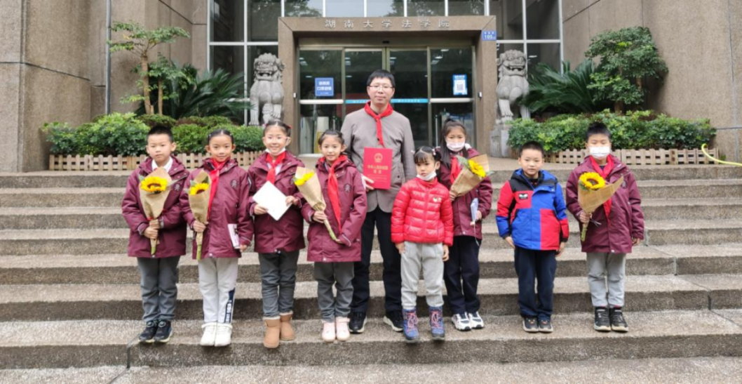 “普法教育从娃娃抓起”。12月5日,蒋海松老师还接待了湖大子弟小学小记者团的宪法日专题采访,用生动鲜活的语言向孩子们普及宪法知识,介绍了宪法与日常生活的关联,强调了法律对孩子们的特别保护,受到孩子们的热烈欢迎。