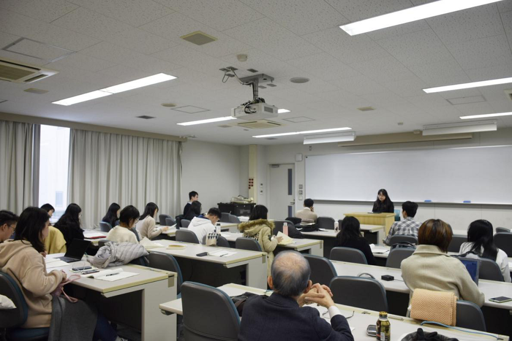 代表孙一然、杨玉甜、张键、白鸽、吴语作学术主题报告,报告围绕反不正当竞争法、公司法、罗马法等相关主题展开。每一位代表报告后,在场同学都踊跃提问,而后徐行教授进行点评并提出相关建议。最后,由铃木敬夫教授进行点评总结,铃木老师针对每篇报告都进行了十分认真详细的点评,并且逐一提出自己的观点和看法,给出相关建议。
