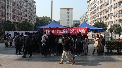 活动还设有线下答题环节。通过回答与南京大屠杀及抗日战争相关的问题,同学们回顾那段屈辱惨痛的历史,更加深入地了解南京大屠杀及抗日战争的背景、经过及战争给中国人民乃至全人类带来的深重灾难。在活动中,超过80%的同学可以答对五道题目,获得最高的奖品,体现出同学们对于相关历史的充分了解与认识。