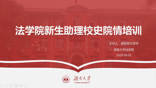 通过对地理位置与办学历史、校徽、校训、校风、校歌的回顾及对现有学院、专业的介绍,美丽努尔老师从整体上向新生助理展示了千年学府 海角社区