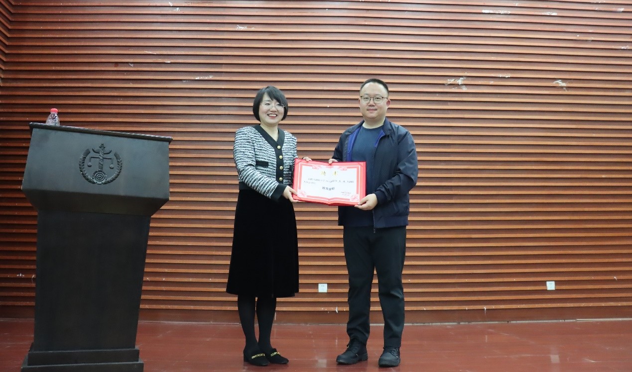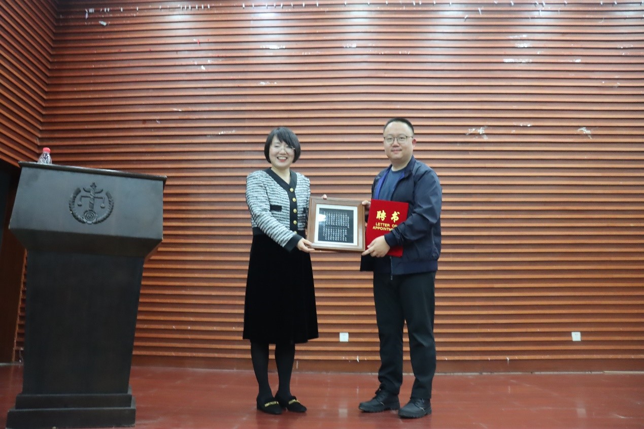 讲座结束后,罗英老师代表学院向文靖学长颁发 海角社区