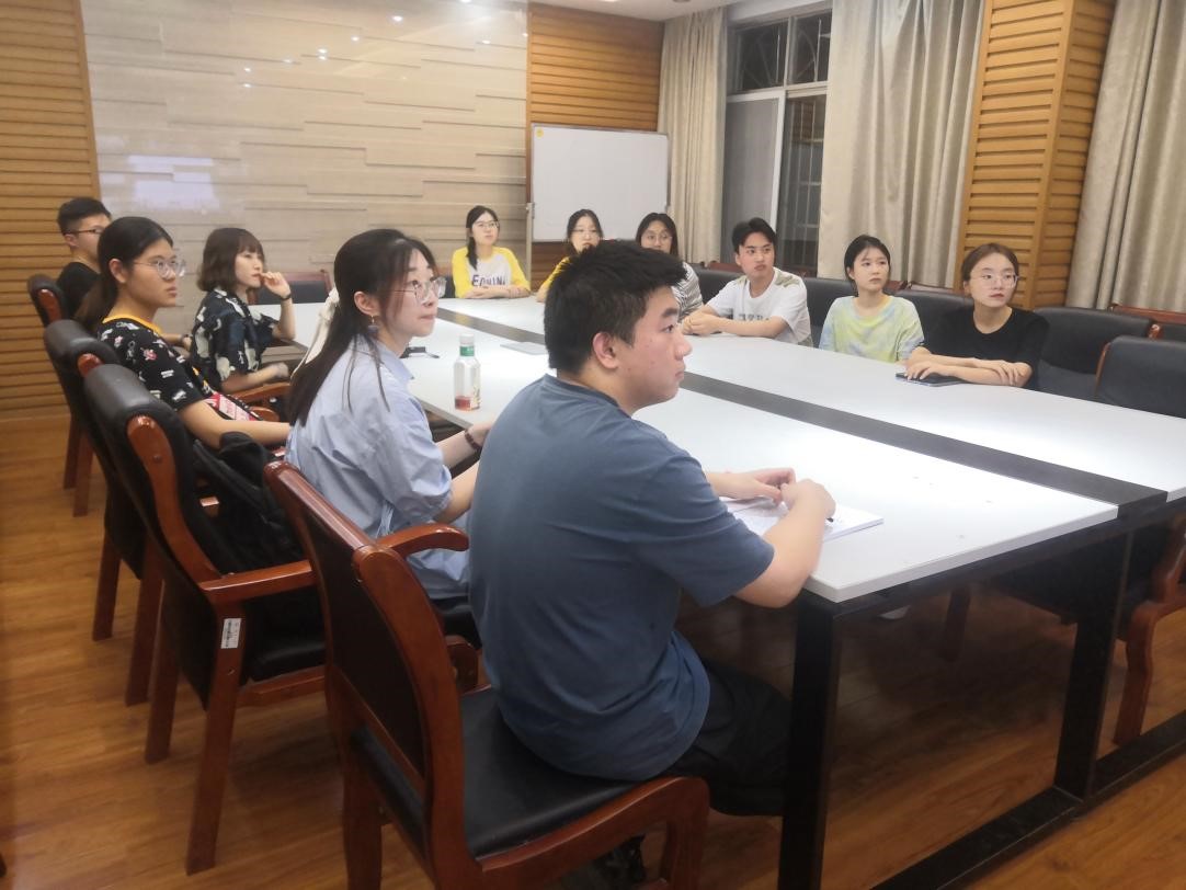 随后,与会学生代表围绕暑假期间学习生活安排、所关注的时政热点事件、假期生活中存在的困惑等方面展开了积极分享。2018级本科生柳照群同学在谈到关注的时政热点时表示,自己作为一名中共党员,假期在家认真阅读了党支部配发的《中国共产党简史》,还表示要在接下来的学习和工作中,努力承担起青年人、法律人应有的责任与担当,他提到“要积极响应党中央号召,牢记初心使命,坚定理想信念,践行党的宗旨,永远保持同人民群众的血肉联系,始终同人民想在一起、干在一起,风雨同舟、同甘共苦,继续为实现人民对美好生活的向往不懈努力,努力为党和人民争取更大光荣”。