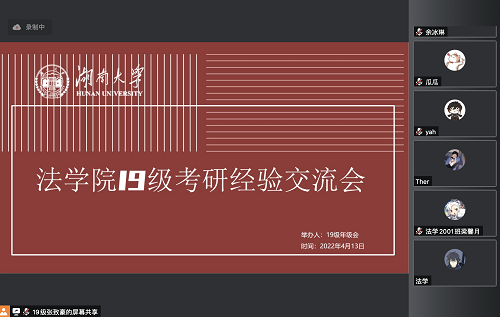 法学硕士已录取)、张文豪(南京师范大学法学硕士已录取)和肖康皓(吉林大学法律硕士已录取)等六位成功“上岸”的学长学姐分享经验,来自2019级和2020级的130余位同学线上参加交流会。 海角社区