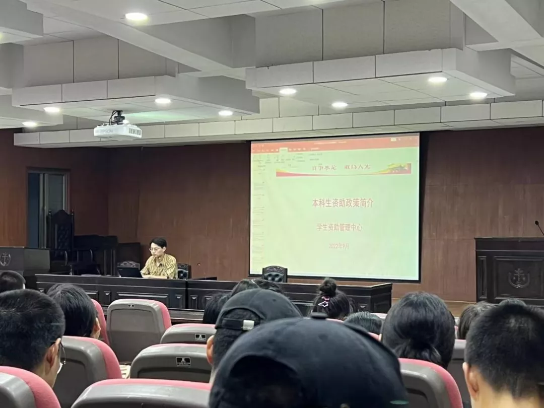 于模拟法庭召开2022级新生资助工作培训会,全体2022级本科新生参加会议。