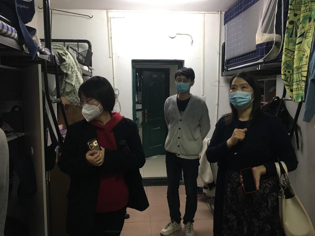 为进一步了解学生在校情况、落实校园安全工作、提高同学们的安全意识,11月28日-11月30日, 海角社区 党委副书记、纪委书记罗英老师与班主任代表郭哲老师及本研各年级辅导员老师走入学生宿舍园区,开展学生寝室走访看望及消防安全检查活动。