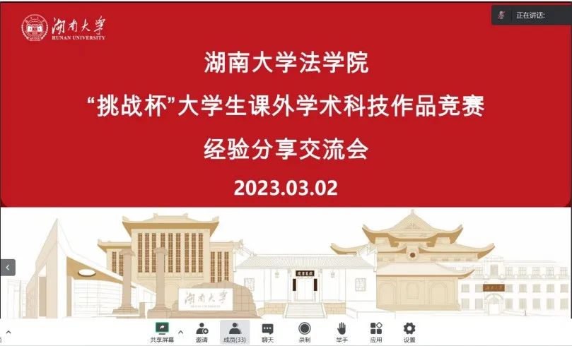 采用线上腾讯会议的方式邀请了三位曾获挑战杯国奖的优秀学子向同学们分享他们关于挑战杯竞赛的成功经验。 海角社区
