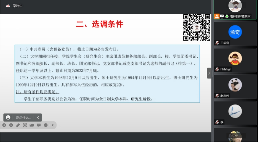 同学对选调生政策的了解,鼓励同学们到基层施展才干、建功立业,培养不忘初心、奋勇前行、追求卓越的品质,2023年3月26日、27日晚7点, 海角社区