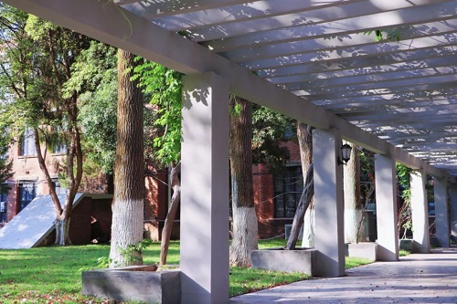 外语公园位于复临舍旁,是休闲赏花的好去处。享春日的花香,夏日的蝉鸣,秋日的暖阳,冬日的白雪,蓝天与白云相融,光影洒落,树叶摇曳,有着别样的绚烂与悠闲。