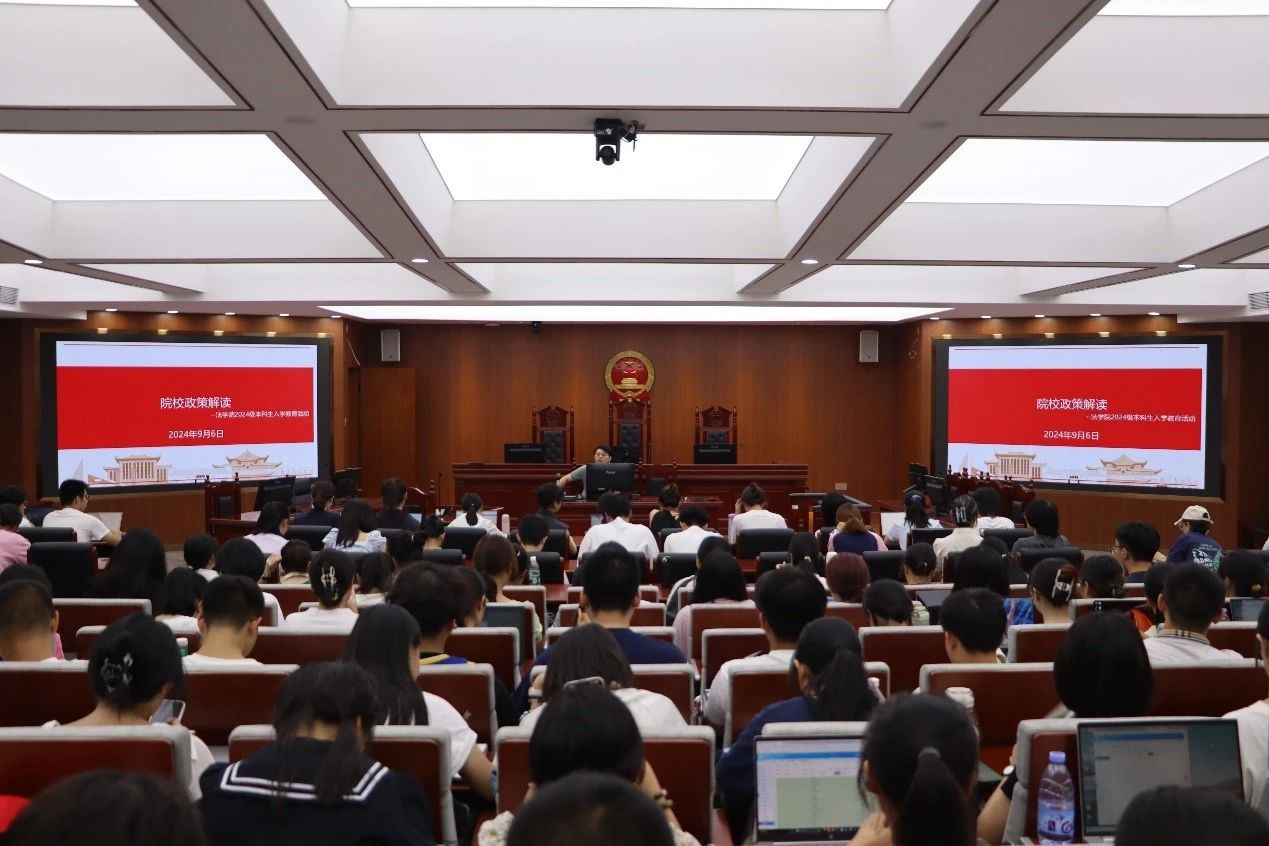 模拟法庭召开。本次会议由2024级新生辅导员曹晓军老师主讲,迎新团队和2024级全体新生参与。