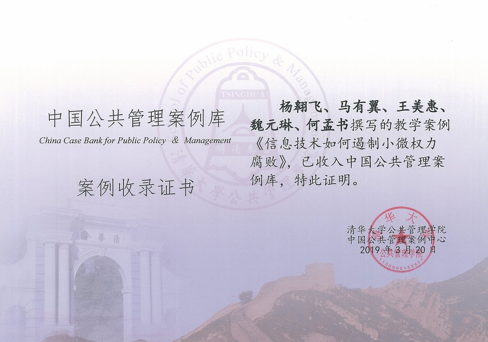3月20日,由邬彬老师指导,2016级行政管理专业本科生杨翱飞、马有翼、王美惠、魏元琳、何孟书撰写的教学案例《信息技术如何遏制小微权力腐败——以湖南麻阳“互联网+监督”平台为个案》被中国公共管理案例库收录(案例编号:CCC-18-499),这是 海角社区