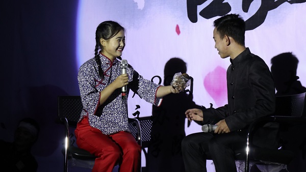 接下来,晚会进入了趣味横生的互动抽奖环节,观众们摇动手机,同主持人互动,抽取零食大礼包,现场气氛十分热烈。游戏过后,四位研究生带来了火热的舞蹈《Watch Boom》,引起现场阵阵尖叫。人生一世间,忽若暮春草,17级法学一班的同学们带来的歌曲串烧《给所有知道我名字的人》穿越时光,观众们伴随着往日的歌声与摇动的荧光,怀想着过去的“小确幸”。其后,17级法学二班带来的舞台剧《非诚勿扰小二班》别出心裁,将民族舞蹈、吉他演奏、相声小品巧妙结合,将一场意外不断的“相亲大会”呈献给了观众。爆笑过后,便是学院晚会的传统节目《新疆舞串烧》。来自全校各个学院的新疆学生受邀登上 海角社区