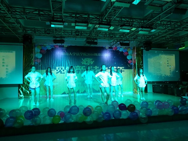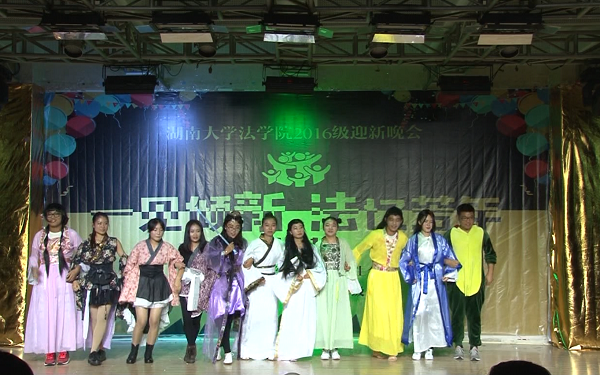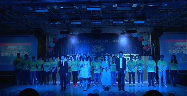 党委副书记、副院长付蓉芬老师,党务与学生工作办公室主任杨锦滔老师,法学1605班班主任刘宏斌老师、行管1601班班主任徐莹老师、法学1604班班主任余凯老师、法学系姚诗老师、法学1601班班主任朴成姬老师,法学1603班班主任李婧荣老师,辅导员李释然、王耿翔、杨凯,以及军训教官、迎新团队成员、学院研究生会、学生会主要学生干部、其他年级学生代表、2016级全体新生近四百人观看了晚会。