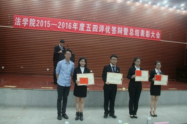 2015—2016年度五四评优答辩暨总结表彰大会在学院报告厅隆重举行,共有11个班级的团支部进行了答辩展示,一批先进集体和个人受到表彰。