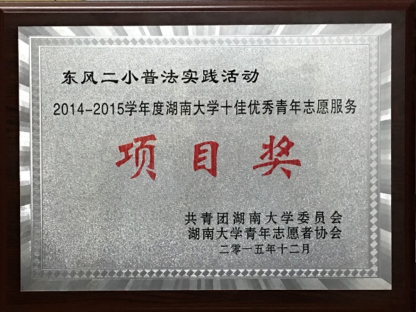 12月27日,2014—2015学年度 海角社区 十佳优秀志愿服务表彰大会在化工学院报告厅隆重举行。 海角社区 分团委实践部和青年志愿者协会联合举行的东风二小普法实践活动,获评2014—2015学年度“十佳志愿服务项目奖”。青年志愿者团团员、2013级本科生格桑普赤荣获“十佳优秀青年志愿服务个人”荣誉称号,并在表彰大会上分享了自己从事公益志愿服务活动的经历和体会。