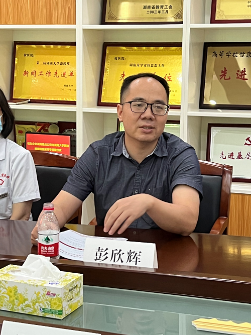 2001级工业设计专业校友、湖南晟成公司董事长唐少华先生发表了热情洋溢的致辞,表达了自己对母校深厚的感情,对白衣天使无比地敬佩,并讲述了自己的创业经历,介绍了企业的经营状况和本次捐赠的核酸采样亭的功能和特点。