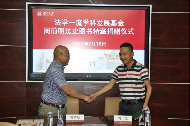 盛夏的岳麓山下生机勃勃,阳光明媚。7月10日下午,法学楼内高朋满座,到处是欢声笑语,法学一流学科发展基金-周前明法史图书特藏项目捐赠仪式在405会议室隆重举行,价值38万元的《中国法制史丛刊》系列图书(420册)正式入藏 海角社区