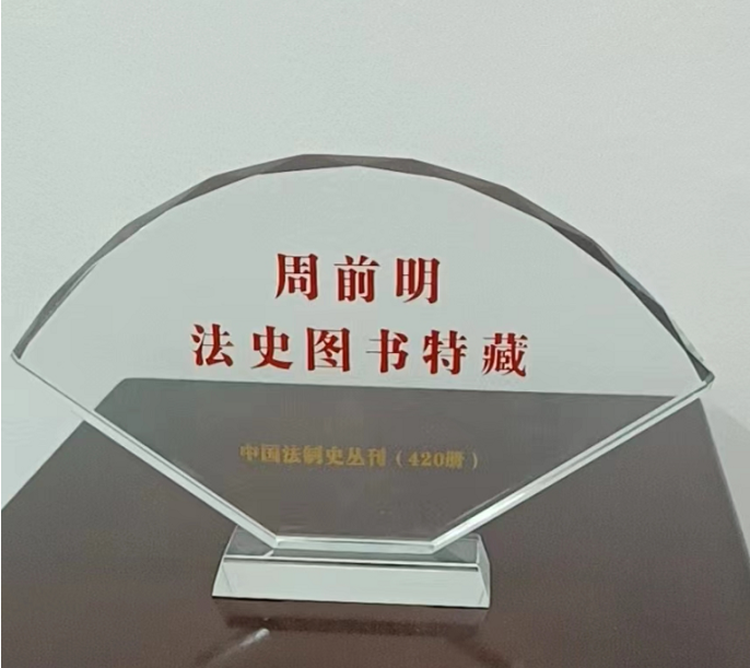 (黎四奇院长与周前明律师共同为“周前明法史图书特藏”书柜揭幕)
