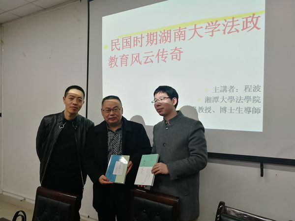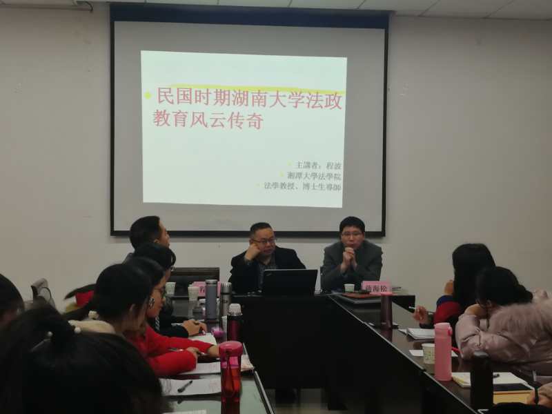 教授,博士生导师程波担任主讲人。程波教授著作有《中国近代法理学(1895-1949)》、《法意发凡:清末民国法理学著述九种》等,论文有《湖南法政教育的早期展开和湖南法政教育先驱者事略考》,对近代湖南法学教育史深有研究。 海角社区