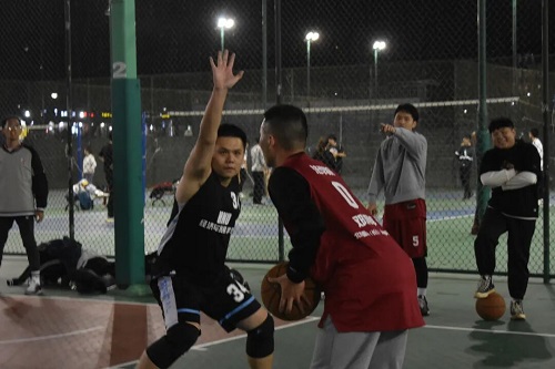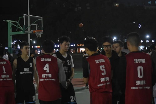 与经济与贸易学院小组赛的比拼在篮球场2号场地进行。随着裁判员的一声清脆的哨响,比赛正式开始。
