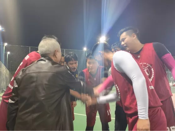 学子的良好风貌。语末屈院长与同学一起加油鼓气,给疲惫的球员注入一针强心剂。
