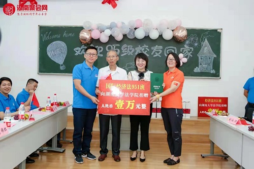 这二十年间办学发展变化,也对学院未来发展方向和计划做了介绍。易骆之书记则带大家一起回忆“被湖大”的日子,坦言“被湖大,不后悔”,他风趣地说在湖大求学的日子潜移默化影响着每一位同学,二十年再聚首最幸福的事是看到大家都是依法守法的好公民,没有一个做违法乱纪的事。