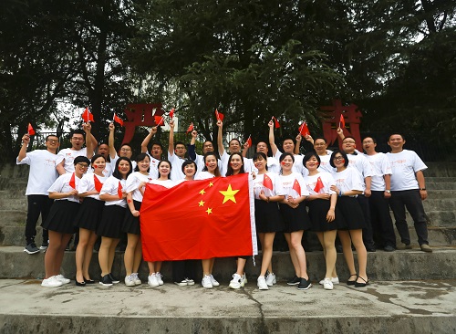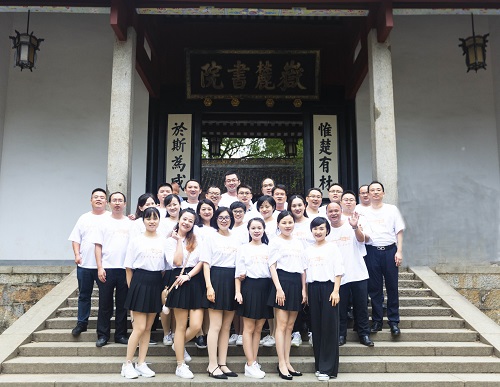 楼前合影留念。