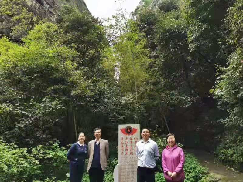 4月18日上午,支部成员一行来到了长寿镇仙姑岩藏军洞、红军营等地参观。仙姑岩红军营旧址全国闻名,海拔280多米,属丹霞地貌,沟壑纵横,岩洞遍布,悬崖峭壁,山势险峻。1928年元帅发动了,创建了,随后率部奔赴井冈山。在途经长寿、龙门时,与敌人浴血奋战,突出重围。一部分伤员便转移到仙姑岩。革命先辈方正平(1955年授予中将军衔)等曾以此地为据点,开展了长达三年之久的游击战争。该地至今保留了红军哨卡、红军指挥所、红军大舞台、军需库、红军井、藏军洞等遗迹。
