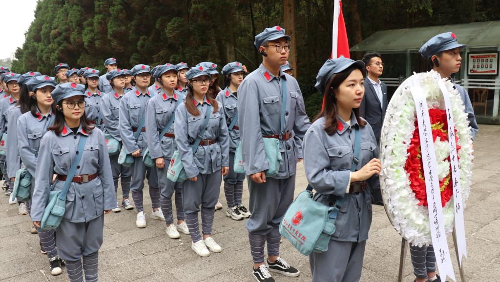 分团委实践部部长郭欣婷表示,一山一精神,青山处处埋忠骨。一步一步皆感悟,这里养育了太多的革命志士,也埋葬了太多的烈士忠魂。井冈山精神,就在这叠山之间。大气的井冈山雕塑园,庄严的烈士纪念堂,丰富的井冈山革命博物馆,旧居旧址,历史遗迹,比比皆是。“我对我选择的信仰至死不渝。我对我走过的道路无怨无悔!”这是老一代女革命家曾志的话,秉救国济世的坚定信仰,投身于革命滚滚洪流之中,风雨如磐,义无反顾。这一程让我们重新知道了这些曾经用一切换回现在的战士们,在漫天战火中站起,在裹着杀气的刀锋旁战斗,在战火弥漫的中华土地上浴血奋战。一段岁月,波澜壮阔,刻苦铭心,一种精神,穿越历史,辉映未来。此地流水潺潺,绿树环抱,只闻鸟鸣,只见蓝天。愿烈士长眠。
