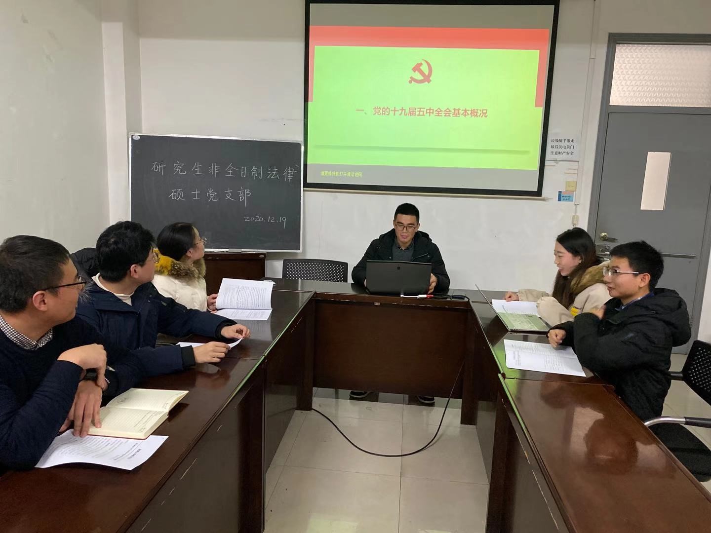 2020年10月26日至29日,党的十九届五中全会在北京举行,为深入学习十九届五中全会重要精神,研究生非全日制法律硕士党支部在学院上级党组织的指示下于2020年12月19日16:00-17:30在 海角社区