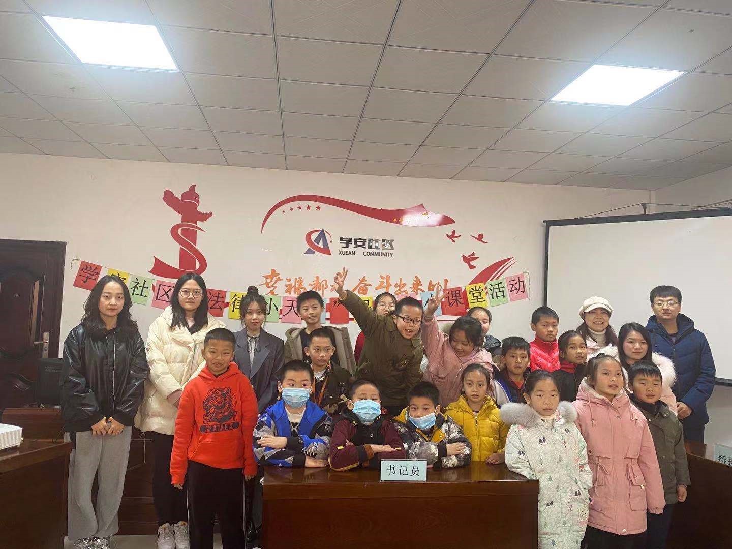 本科生第一党支部联合湖南省大同社会工作服务中心在岳麓区学士街道学安社区共同开展“法律小天平”普法活动。本次普法活动分为模拟法庭和民法典小课堂两个部分,学安社区内的二十余位小学生参加了本次活动。