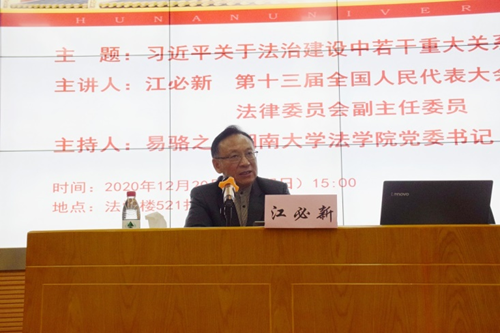 521报告厅听取了现任第十三届全国人民大会宪法和法律委员会副主任委员的江必新教授带来的题为“习近平关于法治建设中若干重大关系的论述”的精彩学术讲座。江教授在讲座中高度概括了习总书记在不同场合、不同时期的重要讲话,他指出习近平法治思想作为法治建设的重要精神,将对推进新时代法治建设和法学教育产生深远影响。研会成员们在此次讲座过程中专心听讲,认真做笔记,收获满满。