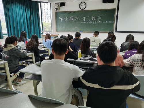 2020年10月15日2020级法学硕士党支部在财院校区水教314举行开学来第一次主题党日活动,主题为“牢记嘱托,不负韶华”,2020级法学硕士党支部全体党员及部分入党积极分子参加了这次活动。