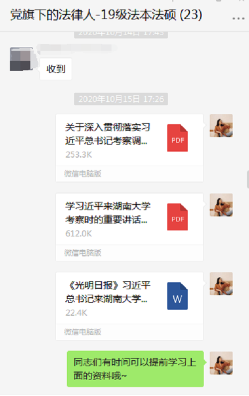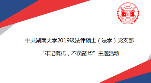 研究生牢记习近平总书记殷殷嘱托,不负青春韶华,为实现第二个百年奋斗目标、实现中华民族伟大复兴的中国梦奉献自己的智慧和力量,根据学校党委工作部署,决定于2020年10月16日晚8点在2019级法律硕士(法学)党支部中开展“牢记嘱托、不负韶华,”主题党日活动。