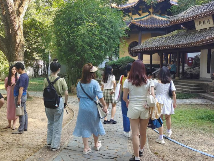 岳麓书院素来享有“中国四大书院之一”的美誉。大家步入岳麓书院正门,首先映入眼帘的是“惟楚有材,于斯为盛”的对联。同学们在此处合影留念。走入书院,同学们各自散开,浏览石柱上的对联,阅读《岳麓书院记》,感受岳麓书生爱国务实的底色,体悟书院传道济民、经世致用、实事求是的精神内涵。